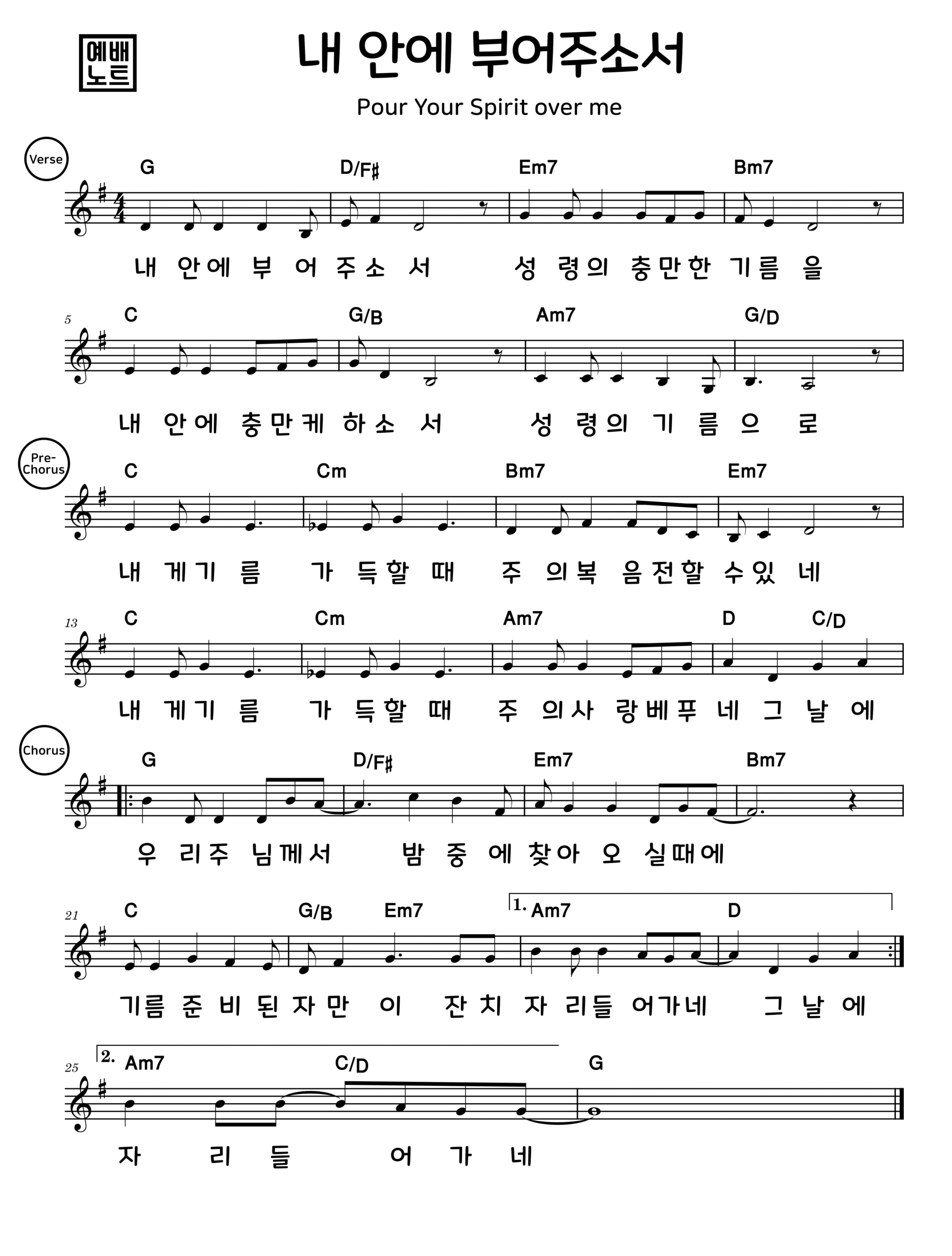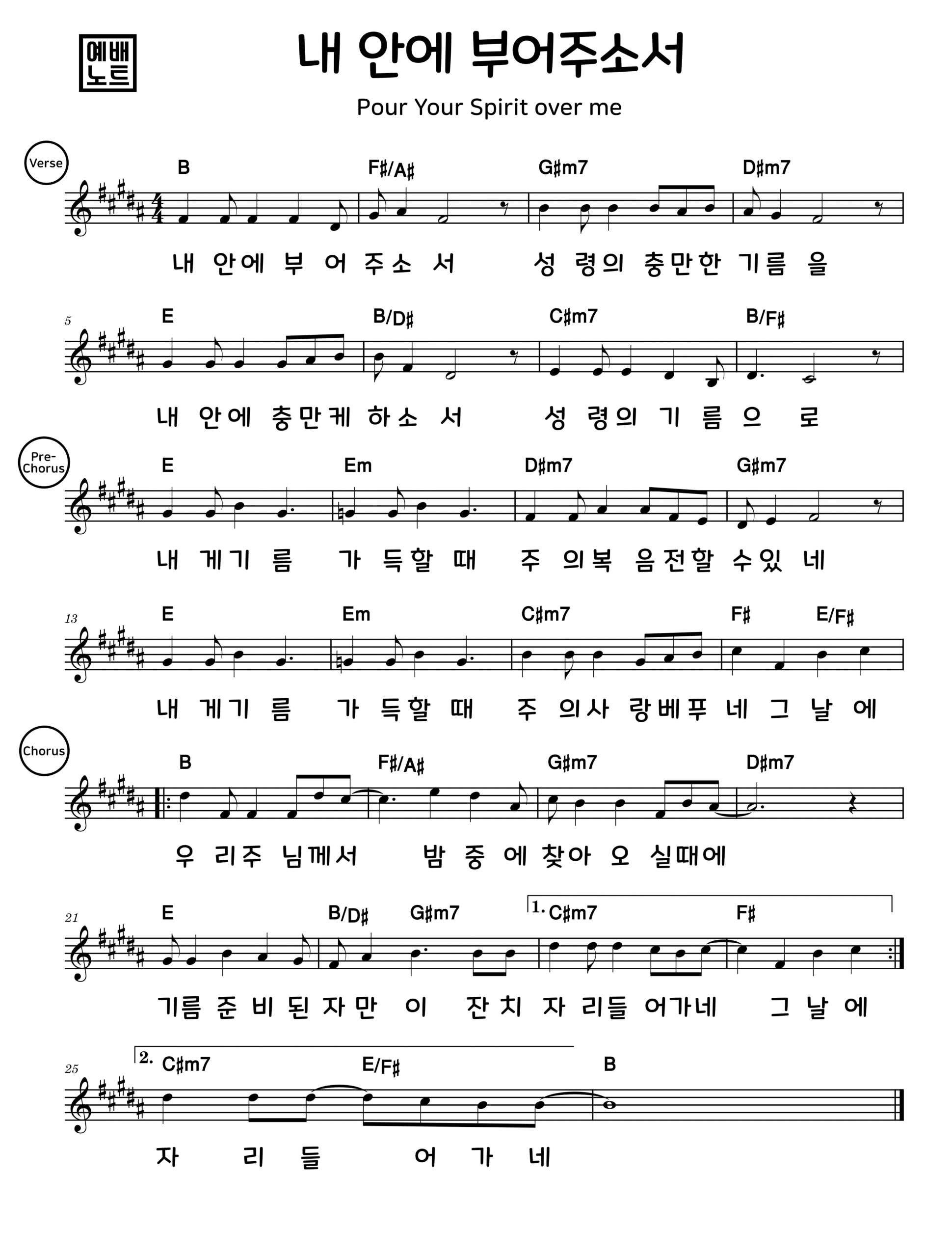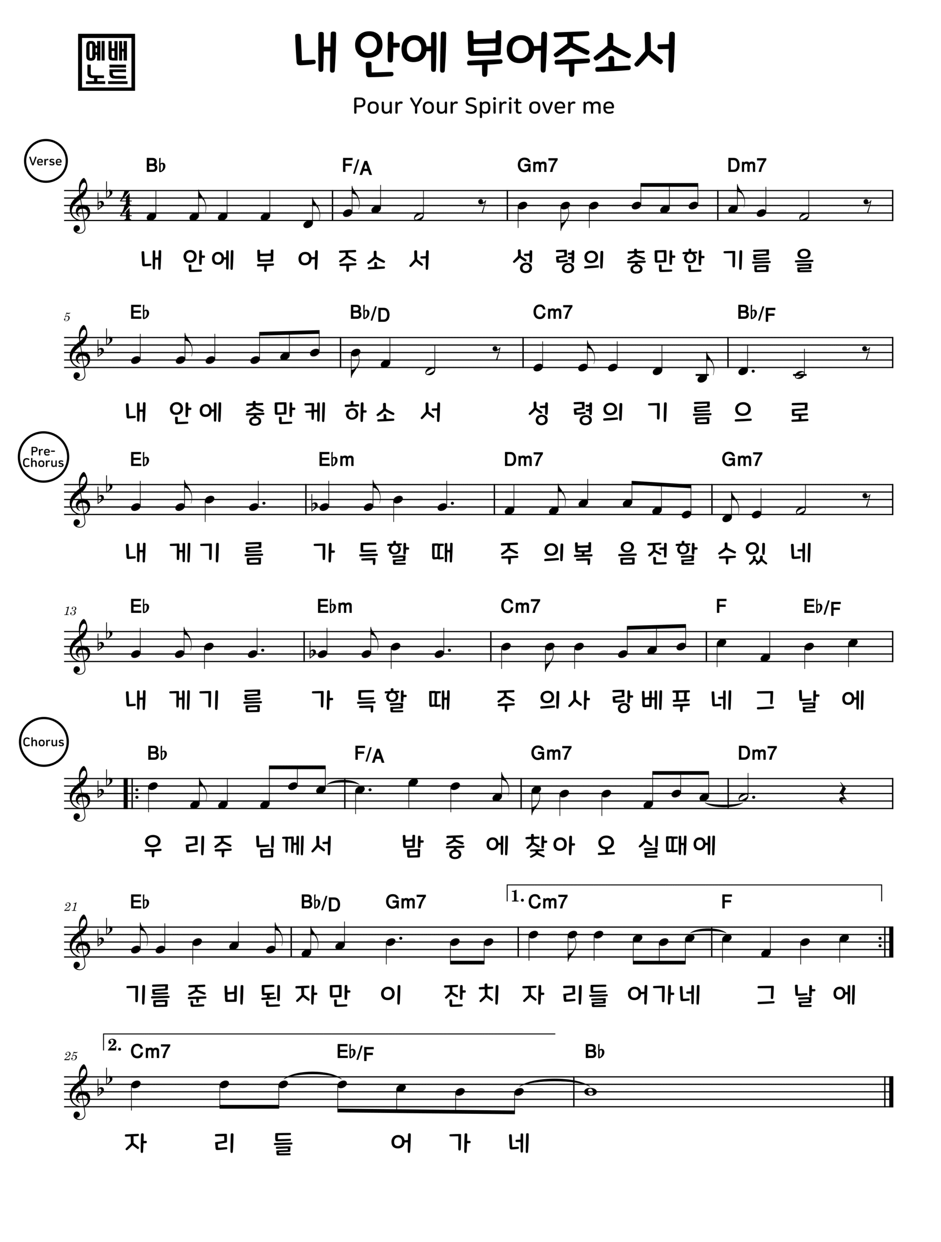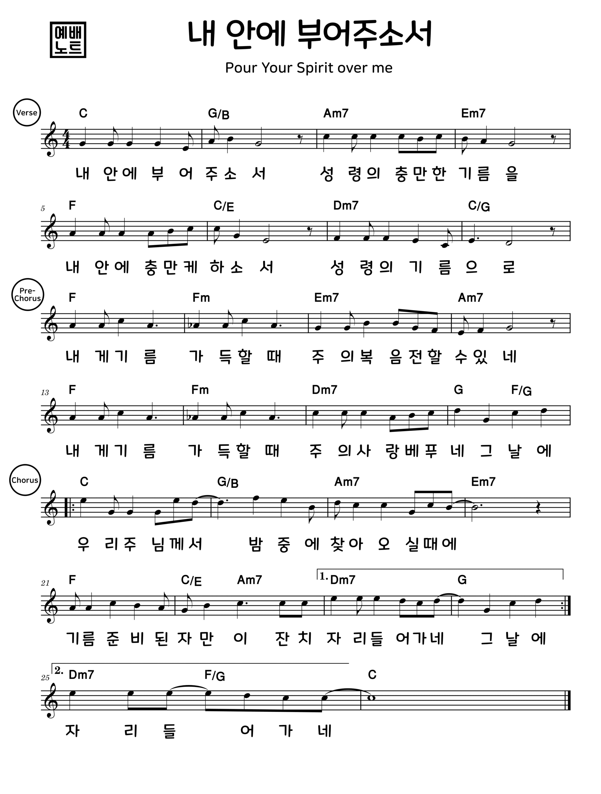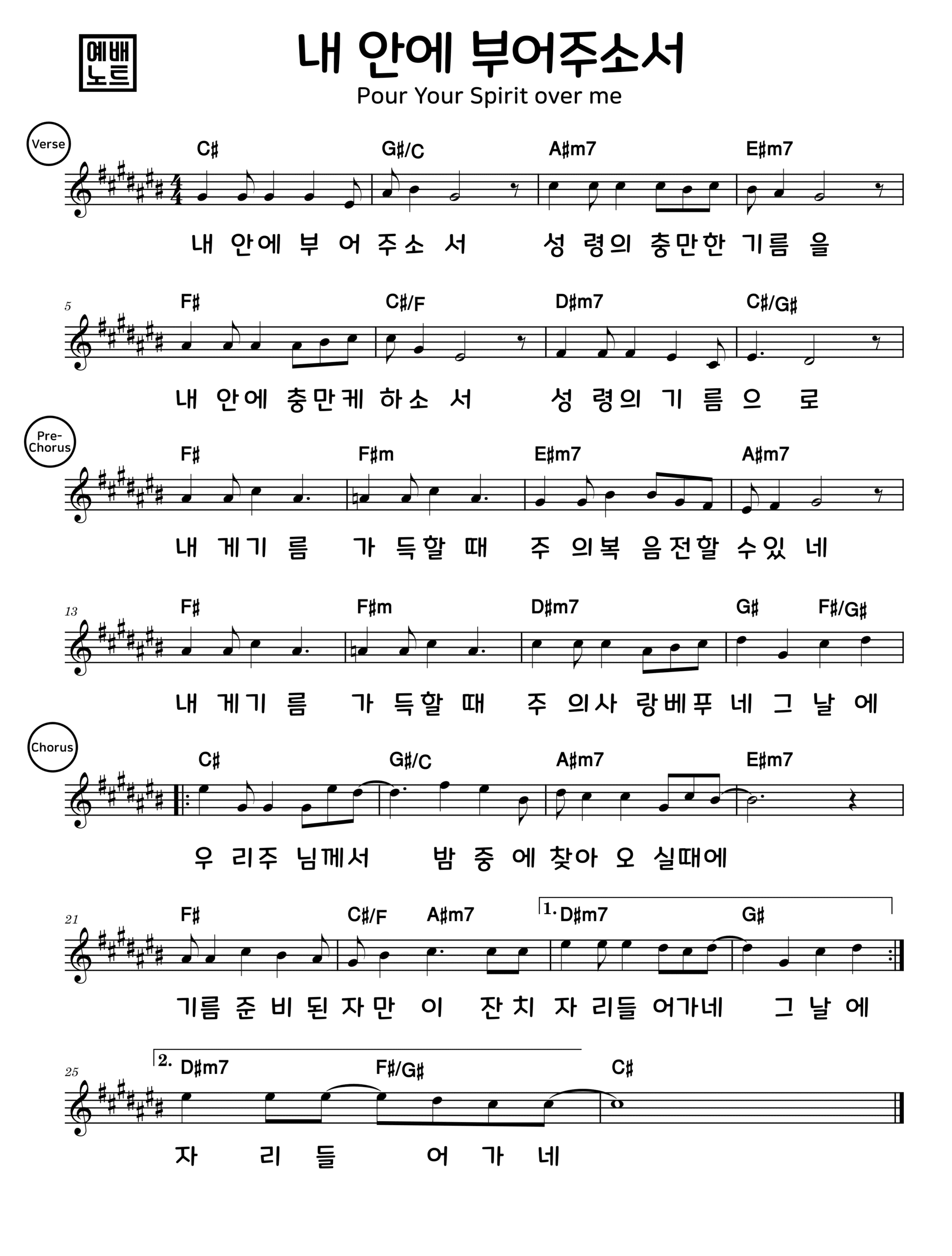 **‘내 안에 부어주소서’**의 악보를 모든 키(12키)로 제공합니다.