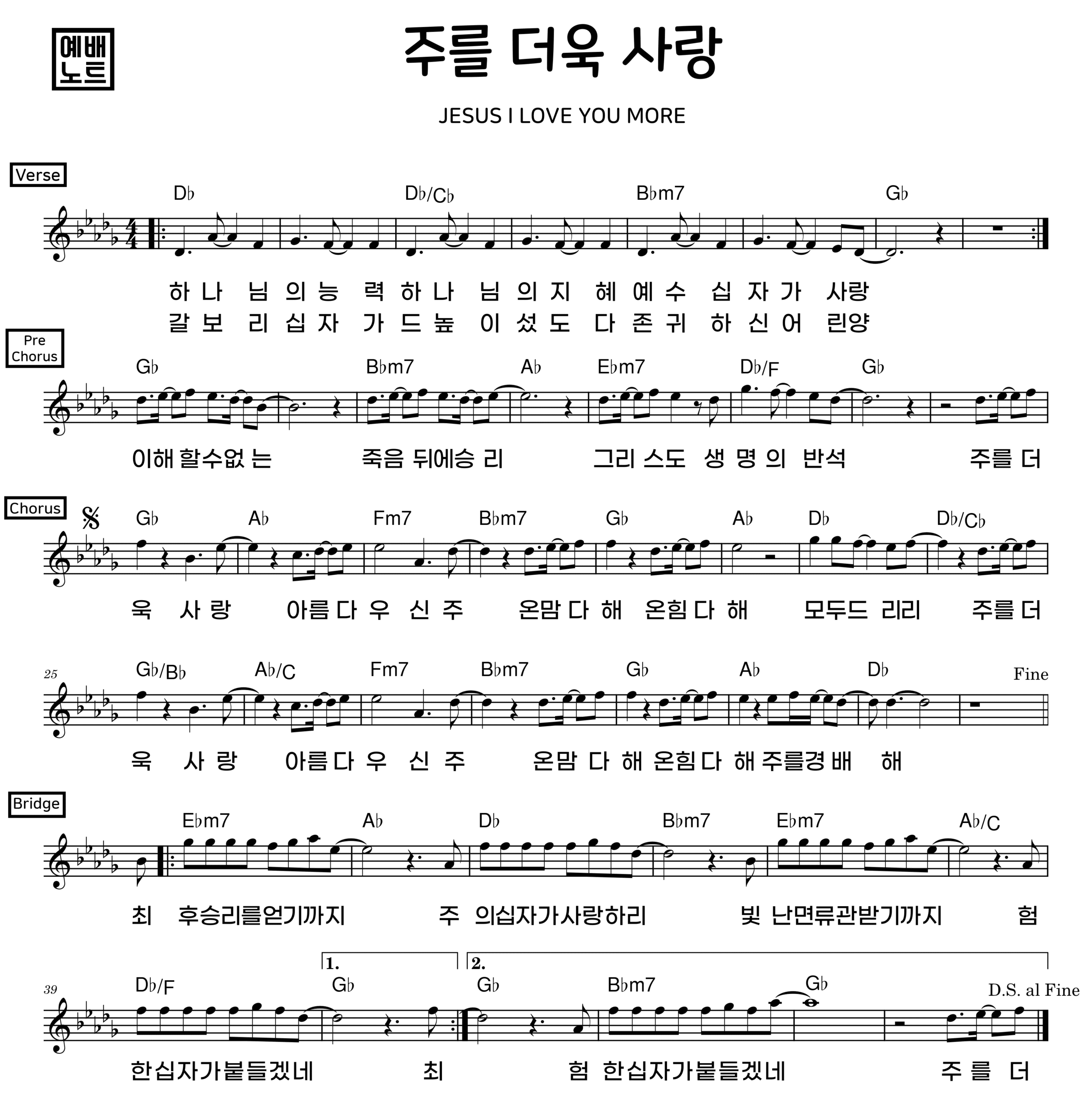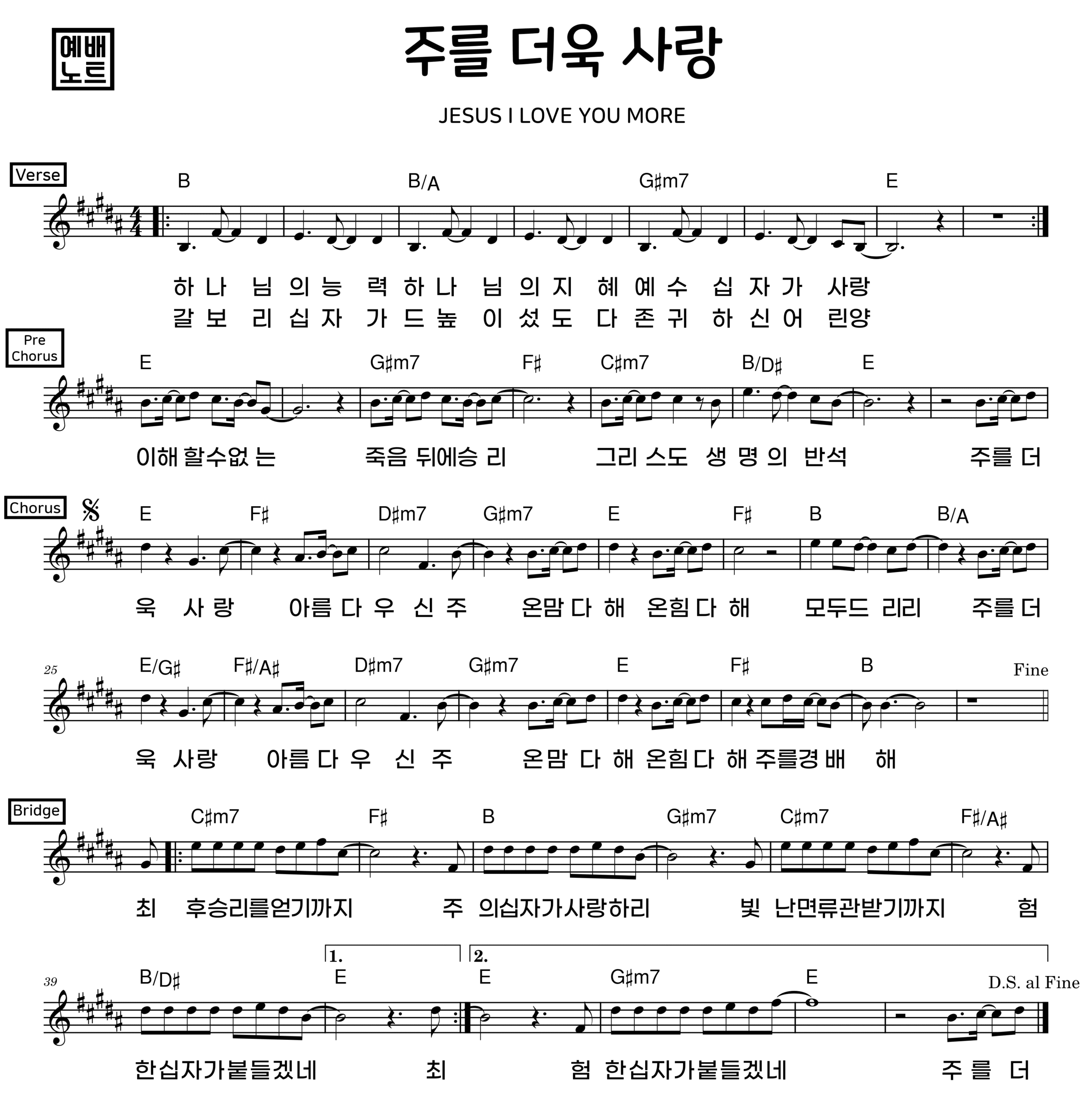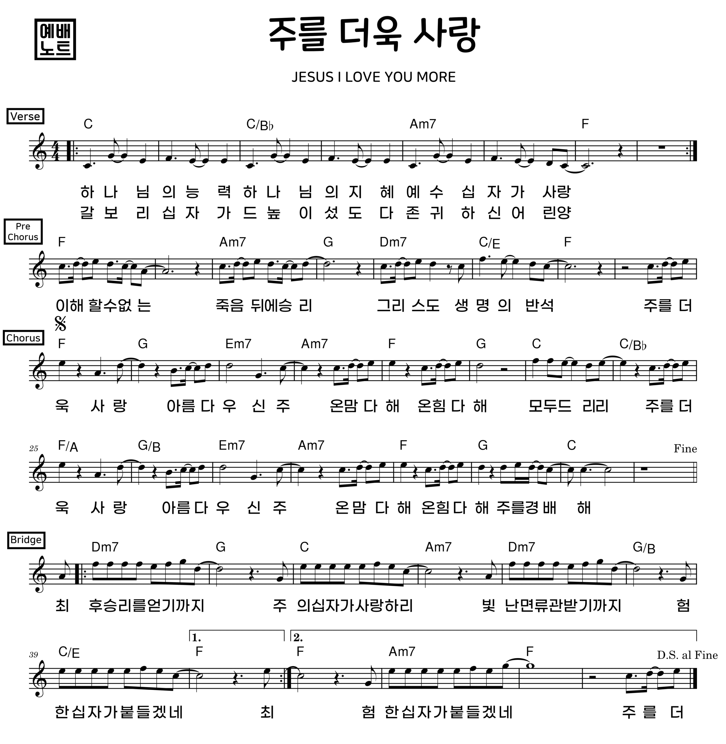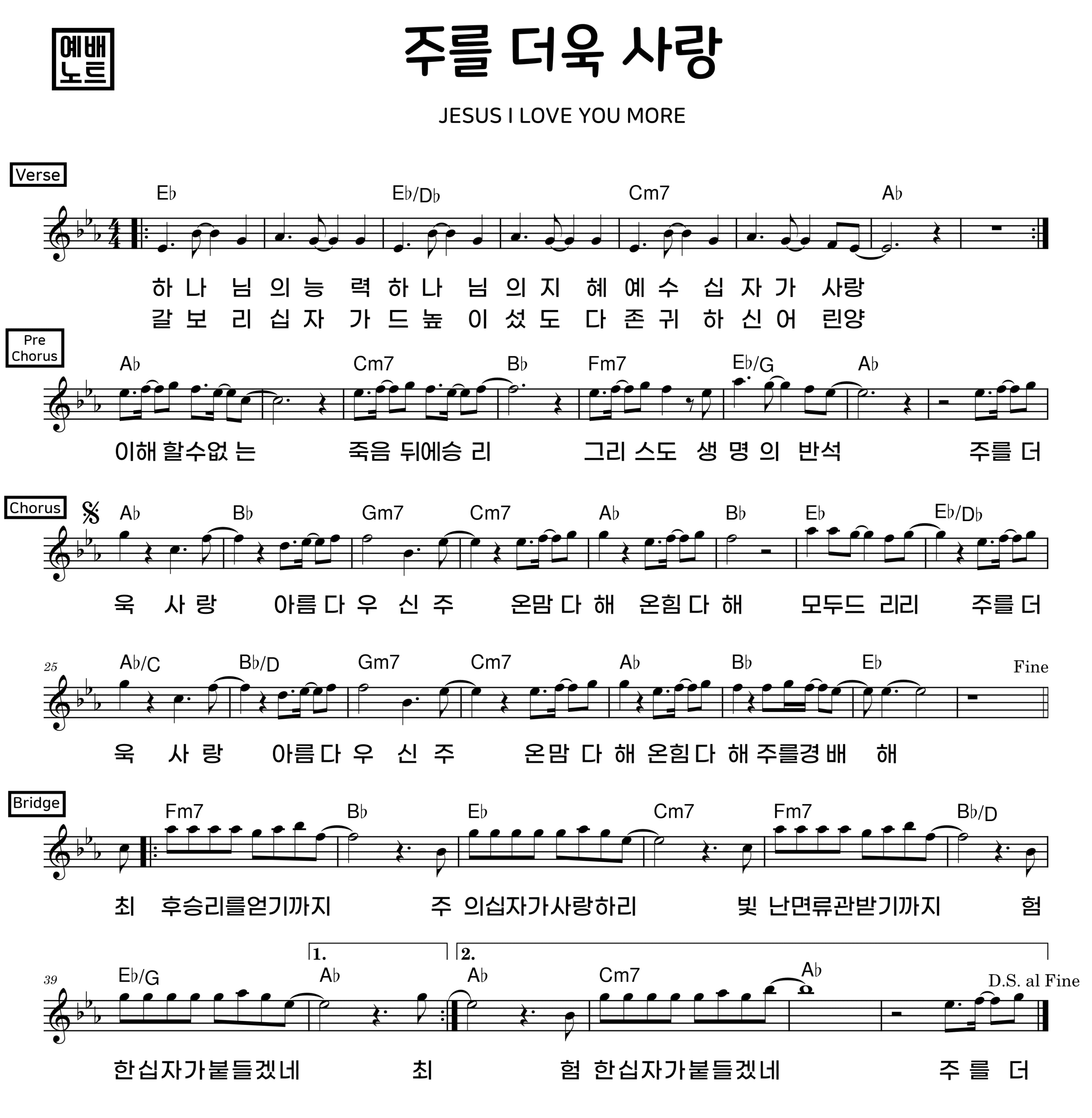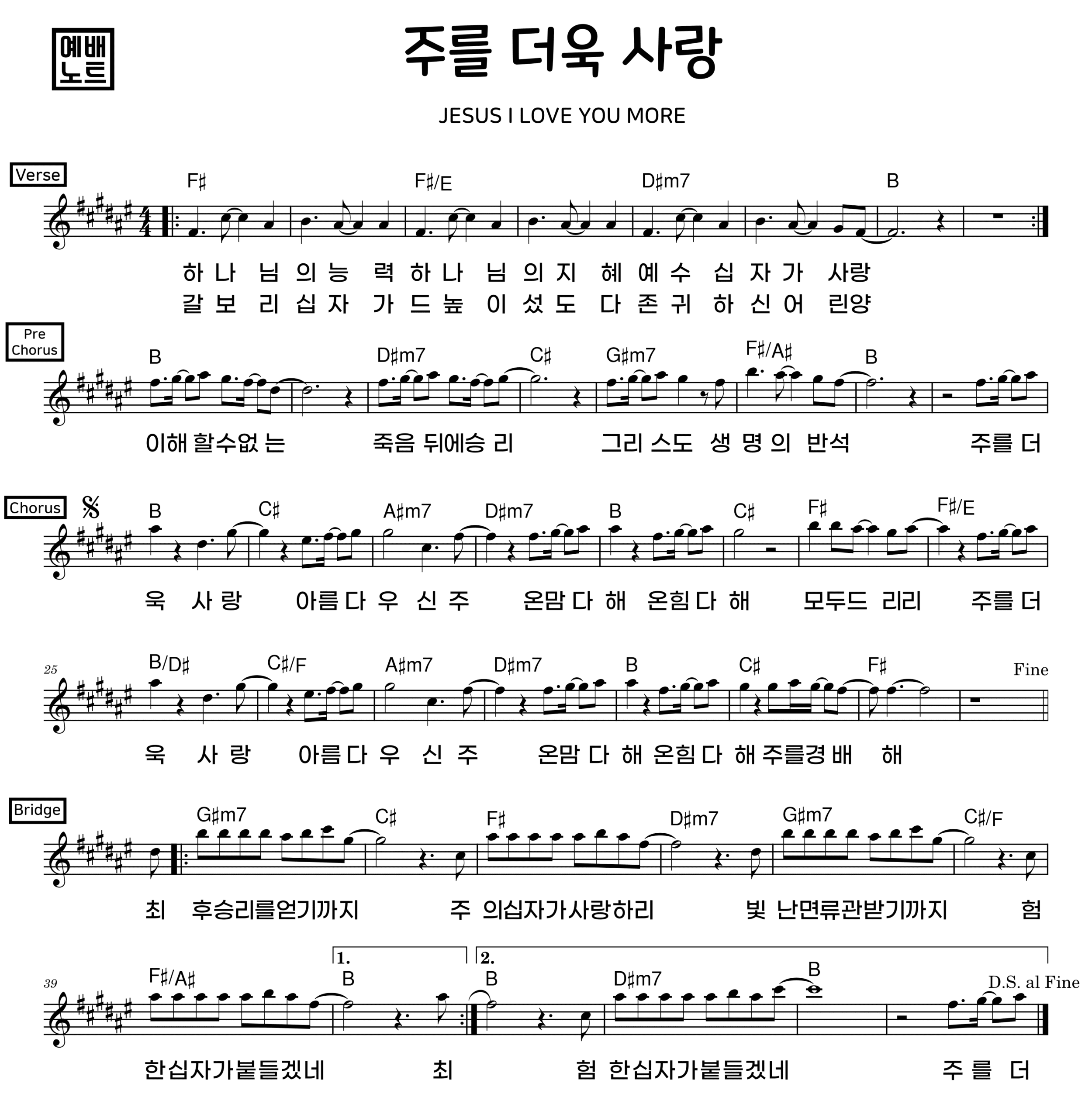 ‘주를 더욱 사랑’ 악보 모든 키 제공 (12키)